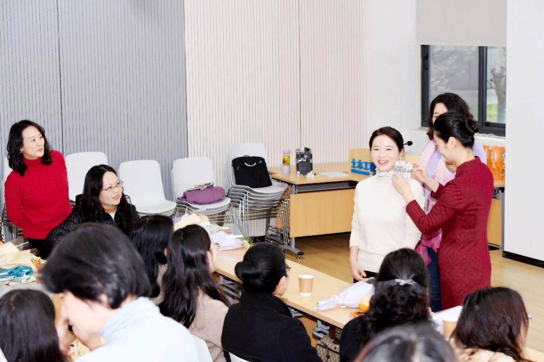 最后,唐老师以清代诗人袁枚的《苔》寄语女教职工:“白日不到处,青春恰自来。苔花如米小,也学牡丹开。”她鼓励大家以乐观坚韧的姿态面对挑战,在职业与生活中绽放独特光彩。活动现场气氛活跃,大家纷纷表示受益匪浅。