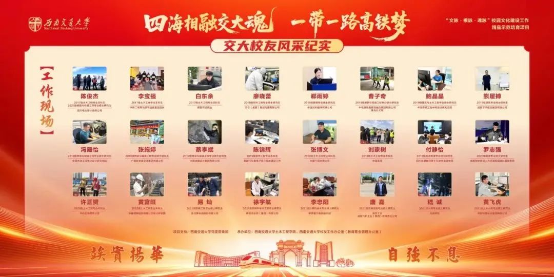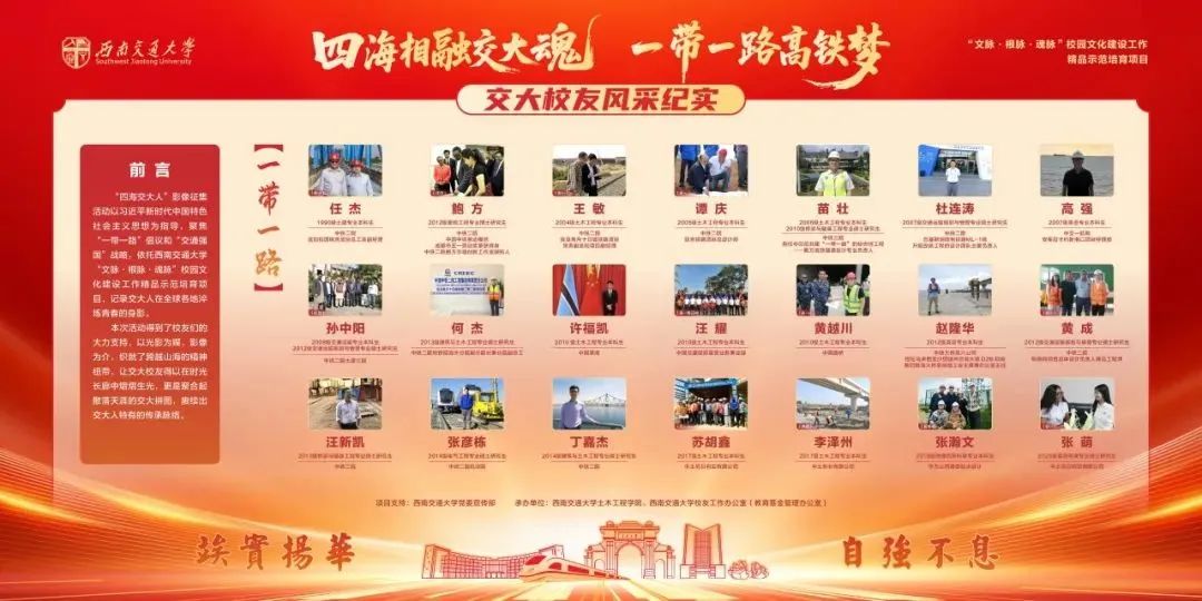 四海相融交大魂,一带一路高铁梦。一百二十九载岁月流转,交大人的足迹遍布山河寰宇。自“四海交大人”影像征集活动开展以来,全球校友积极响应、踊跃参与。27期精心打磨的推送,115位校友的投稿,如同一封封跨越山海的家书,互诉心中的牵挂与思念。200余帧珍贵影像从四海汇聚,从不同维度勾勒出交大人波澜壮阔的精神图谱。如今,在万千交大人的支持和关注下,这次传承交大精神的情怀之旅正式落下帷幕。