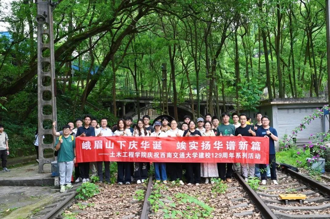 值此建校129周年之际,学院师生代表重返峨眉校区,开展“峨眉山下庆华诞,竢实扬华谱新篇”主题校庆活动。在建筑群中,师生们沉浸式参访图书馆、轨道实训基地、名山电影场等“大三线”精神地标,重走157阶、穿越风雨操场,触摸斑驳砖墙上的百年奋斗印记。此次活动,激励新时代交大土木人传承精神血脉,铭记峥嵘岁月,为强国建设不懈奋斗。