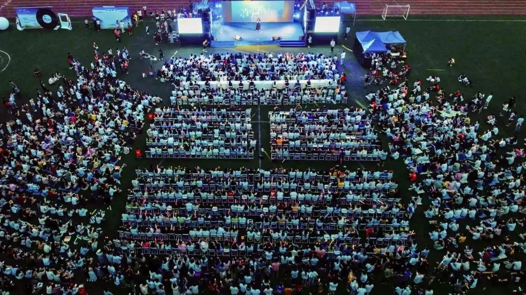 图为建校129周年校友返校活动中学院院友航拍出“土木”字样
