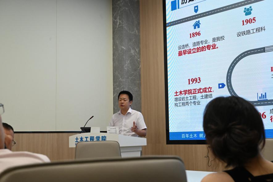 会上,双方首先介绍了与会人员,并共同观看了西南交大土木学院宣传片,直观了解学院在人才培养、科研创新等方面的成果。随后,郑江书记代表土木学院致欢迎辞,对宜宾市国资委党校一行的到来表示热烈欢迎。郑江书记详细介绍了学院师资力量、学科体系、人才培养情况,强调了双方合作对推动教育培训高质量发展的重要意义,并希望发挥学院科研、教学资源优势,积极开展人才合作,助力地方人才队伍建设。
