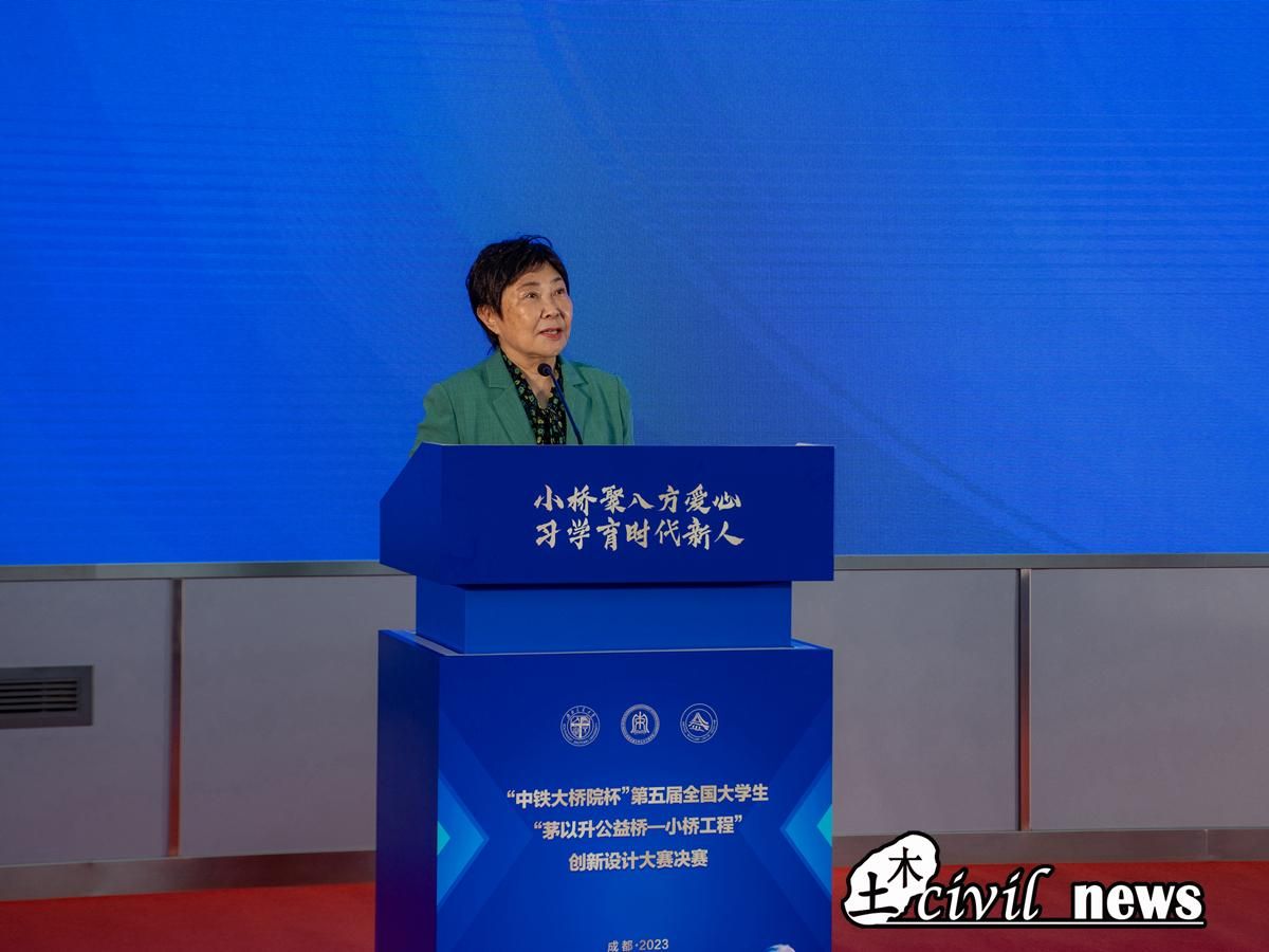 随后,福州大学参赛教师代表赵秋教授上台发言。赵秋表示,大赛旨在传承并发扬茅以升先生迎难而上的科学技术和勇于担当的奉献精神,“用桥梁连接公益”,为贫困地区的孩子架设安全求学之桥。在突出创新性的同时,结合国情,为桥梁的过渡建设作科学论证。