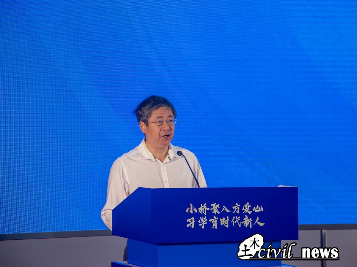 致辞结束后,评审委员会专家李永乐教授上台向在场师生介绍比赛规则。李永乐强调,本届大赛将公益性、科学性、先进性、实用性、经济性五项作为竞赛理念,强调自然、科学与人文的相互结合,此外,本届“茅以升公益桥—小桥工程”创新设计大赛是“办赛+建桥”首次同办且由同一单位承办,也是疫情后首年线下办赛,具有规模大、难度大等特点。