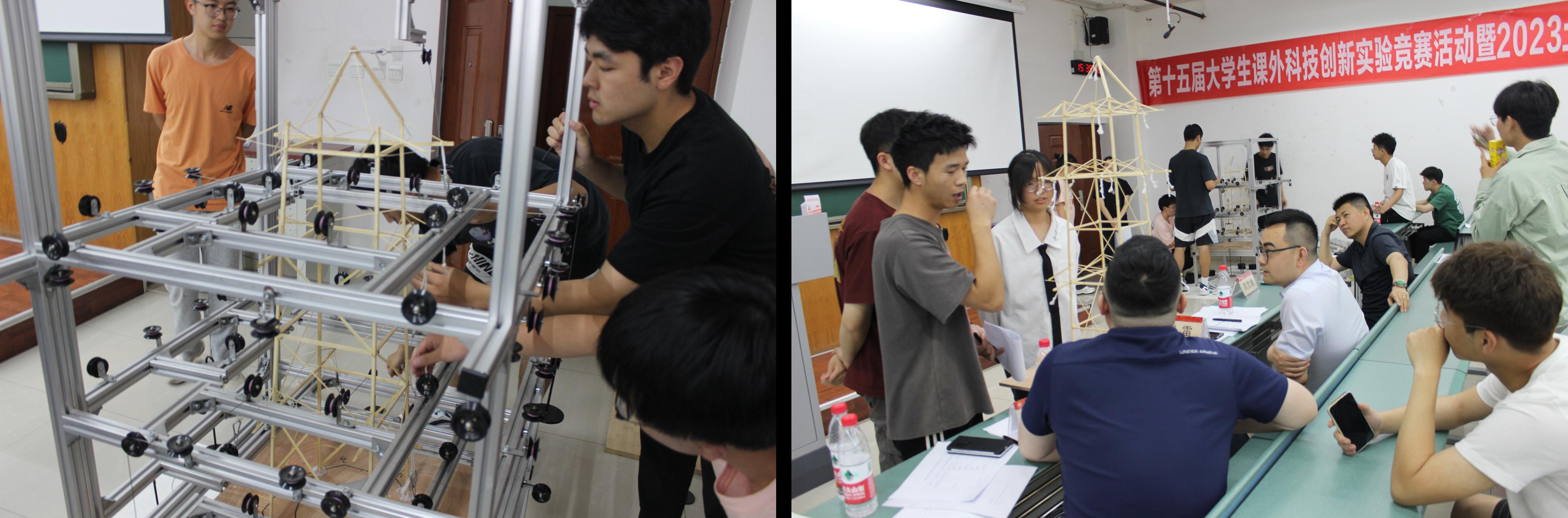由主持人宣讲竞赛精神与准则后,竞赛开始。模型加载环节与答辩环节分开进行,各小组指派一名同学,结合PPT对模型制作思路、创新理念与分析计算进行讲解;其余成员在主办方负责人指导下,在后排旁听他组吸取经验。选手们进取向上、学术交锋,或结队讨论成果优劣,竞赛现场氛围非常浓厚。评委老师孜孜不倦,在指出模型不足之余,对参赛同学们的创新精神也表示赞许,并对他们的模型制作和未来研究提出了宝贵的意见。