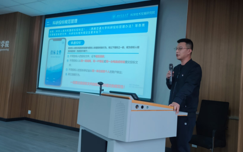 陈嵘副院长重点针对科研诚信和学术道德建设的内容,向全院教职工进行了宣讲和阐述。结合近期各大高校中的一些违规违法的案例,他特别提醒了大家在今后的科研项目投标、师德师风、科技评奖、科研经费管理、非职务违法犯罪等方面要做到守规守法。其中,他将科研项目投标的相关法规作为一项重点,在会上进行了多次强调。