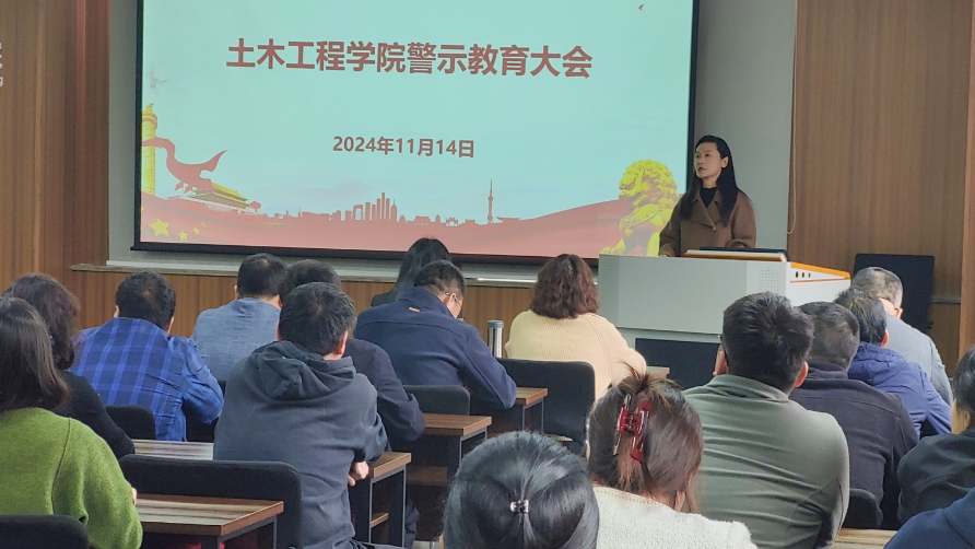 2024年11月14日下午14:30,在九里校区一号楼1234培训教室,诸侯快讯ok1133.com召开教职工大会,专题开展警示教育。受蒲黔辉院长和郑江书记的委托,分管教职工工作的车小洁副书记和分管科研与实验工作的陈嵘副院长在本次教工大会上开展了警示教育的领学和宣讲。