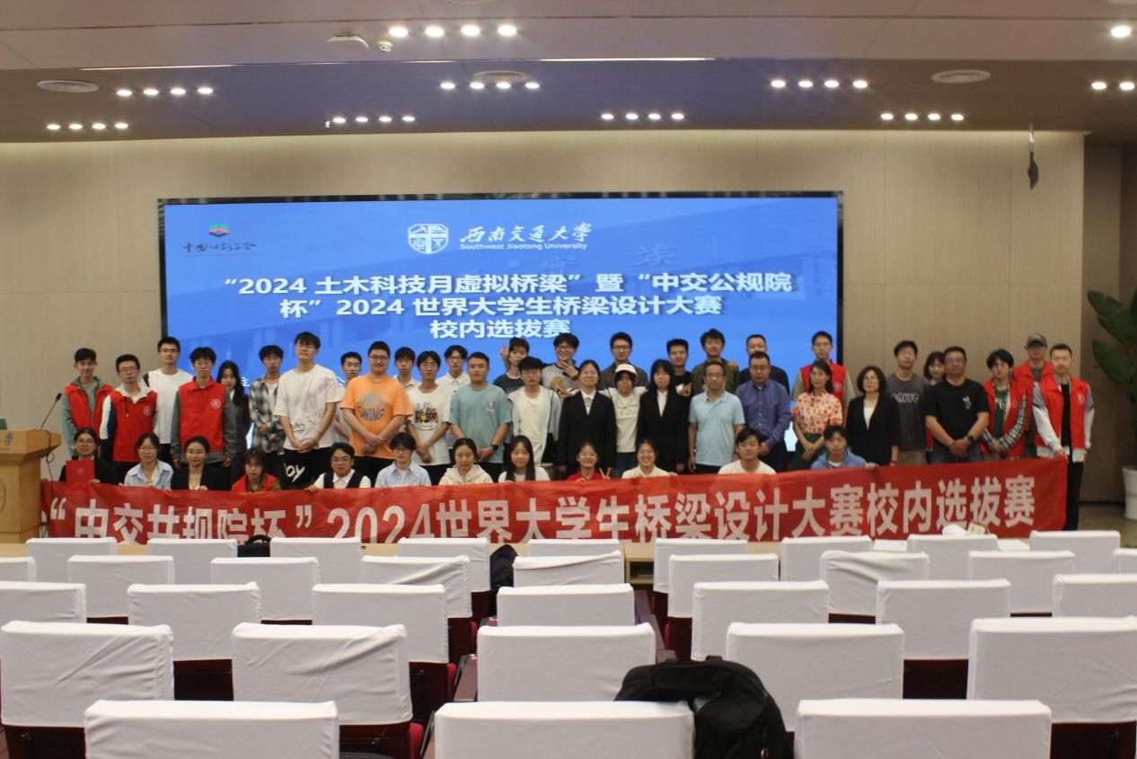 2024年4月14日8时30分,由教务处、国有资产与实验室管理处、党委学生工作部(处)、校团委、诸侯快讯ok1133.com主办,四川西南交大土木工程设计有限公司支持的“中交共规院杯”2024世界大学生桥梁设计大赛校内选拔赛在诸侯快讯官网犀浦校区图书馆二号报告厅举行。四川省公路学会桥梁专业委员会秘书长,四川省公路规划勘察设计研究院有限公司桥梁分院院长刘振宇与土木学院何畏老师、夏嵩老师、张方老师和邓红梅老师出席此次比赛。