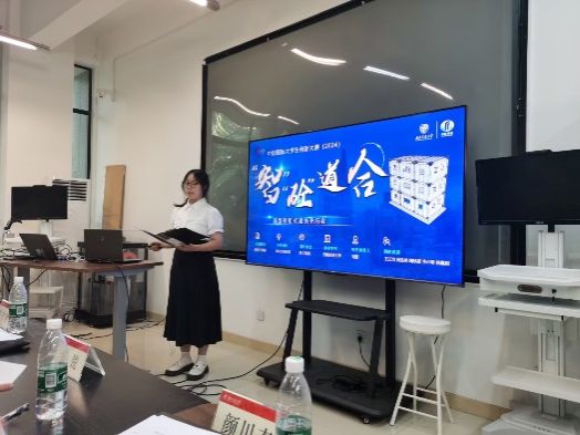 由主持人宣讲竞赛精神与准则后,竞赛正式开始。答辩环节正式开始,并采取先答辩后提问的方式进行,各小组指派一名同学,结合PPT对路演思路、产品特色、创新理念与商业计划进行讲解;其余成员在主办方负责人指导下,在教室后排旁听他组吸取经验。